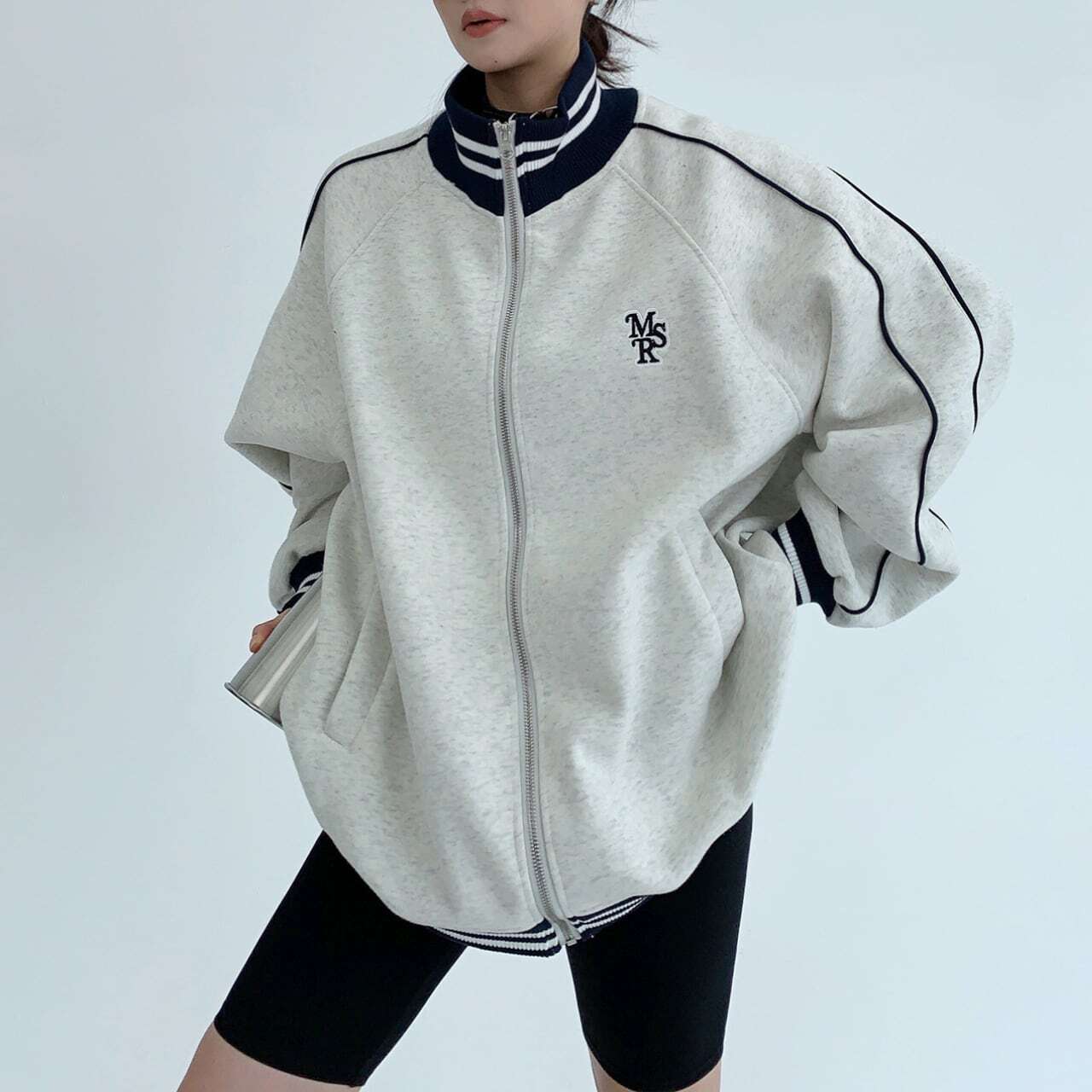【stand collar ribbed light grey track jacket スタンドカラーリブライトグレートラックジャケット J0828】