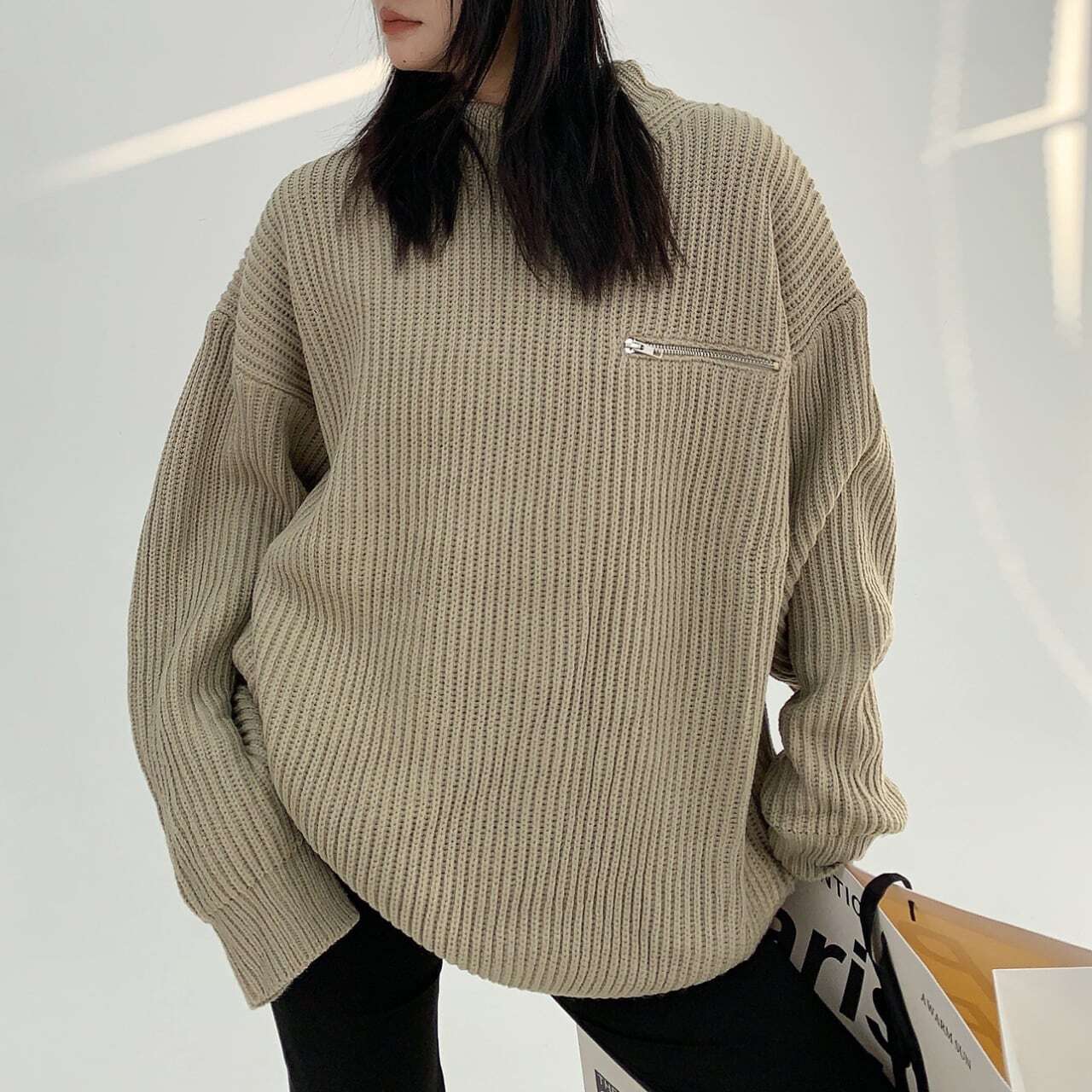 【zip detail crew neck knit ジップディティールクルーネックニット J0650】 https://shop.jemmener.com/items/97529155