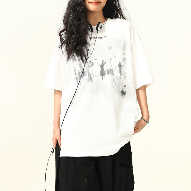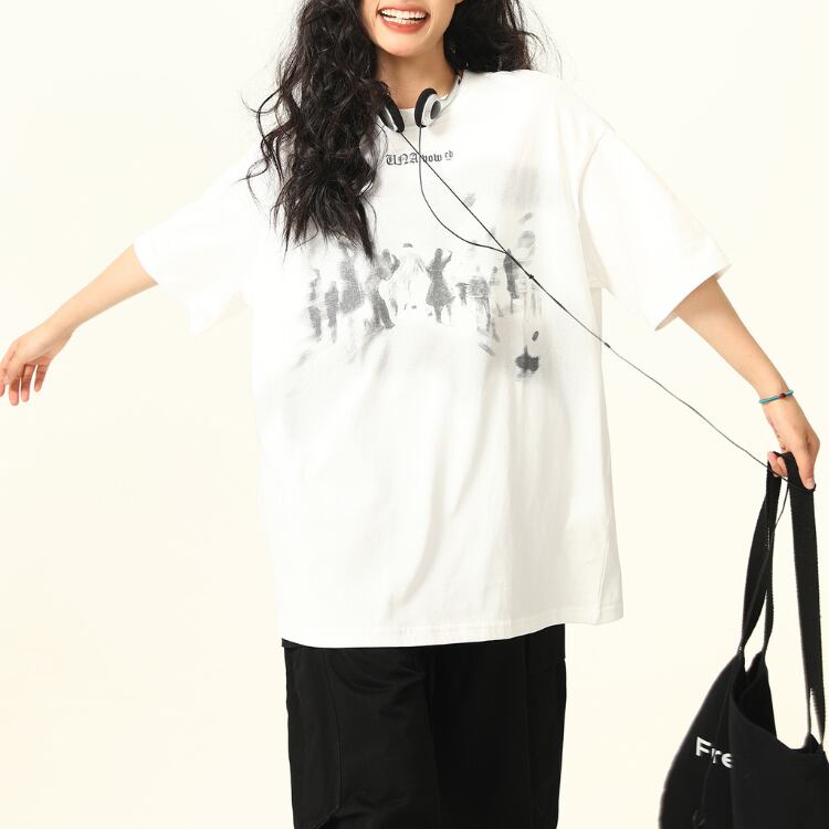 ぼかしシルエットプリントが印象的なTシャツ。 シンプルながらも個性が光る、コーデの主役になる一枚。 【サイズ】 M 肩幅:54cm 胸囲:118cm 着丈:72cm 袖丈:22cm L 肩幅:55cm 胸囲:122cm 着丈:74cm 袖丈:23cm XL 肩幅:56cm 胸囲:126cm 着丈:76cm 袖丈:24cm 2XL 肩幅:57cm 胸囲:130cm 着丈:78cm 袖丈:25cm ※採寸方法により1~3cmの誤差がある場合がございます ※モデル 身長163cm Mサイズ着用 【カラー】 ブラック ホワイト 【素材】 綿 ✔ Shop top page https://shop.jemmener.com/ ✔ HOT ITEM https://shop.jemmener.com/categories/5960438 【お届けについて】 こちらの商品は海外店舗より直接発送となる為、 ご決済から発送まで1~3週間前後のお時間をいただいております。 (※商品の状況によっては、3週間以上かかる場合もございます。 その際は、メールにてご連絡させていただきます。) ◼️注意事項 ・タイミングによっては 商品在庫切れにより 注文キャンセルとさせていただく恐れもございますので、 予めご了承くださいませ。 ・こちらは輸入品となります。 日本製とは検品基準が異なる為、新品未使用品でも ごくわずかな汚れや傷がある場合もございます。 ・商品の色味は、お手持ちのデバイスの 環境設定により実物と若干異なる場合がございます。 ・イメージ違いやサイズ等、お客様都合による交換、 返品、キャンセルは対応出来かねます。 ———————————— ご購入前にこちらをお読みください →https://shop.jemmener.com/about ————————————