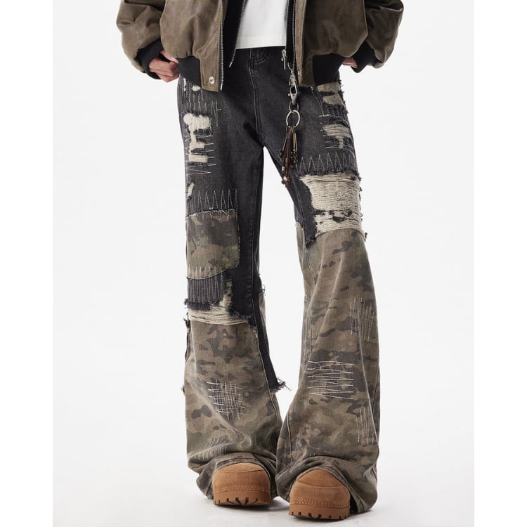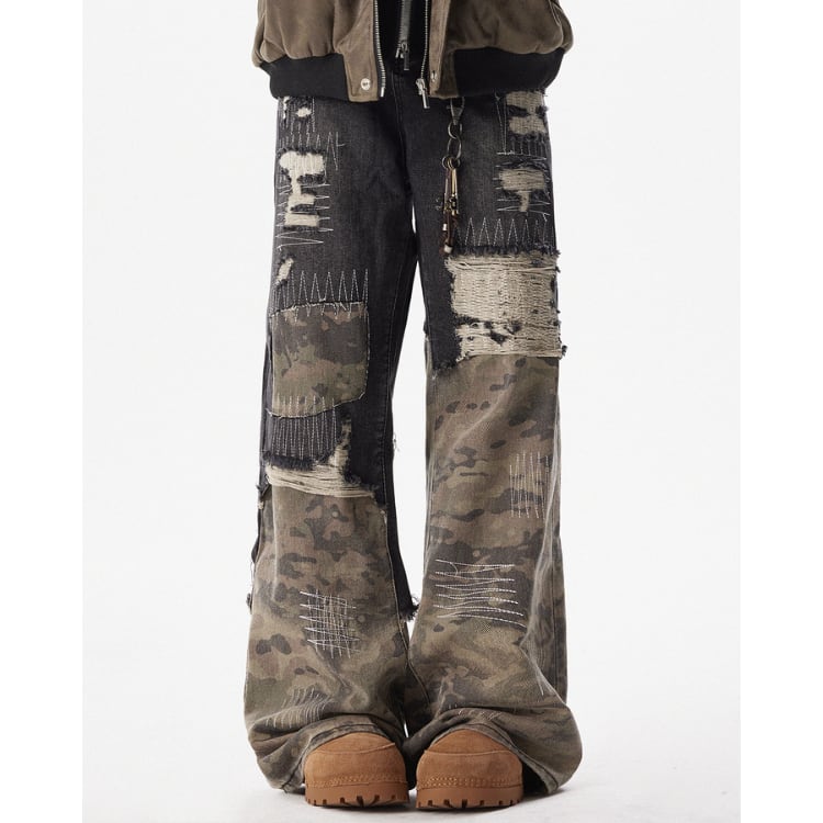 デニムと迷彩の組み合わせが、絶妙なバランスを生み出し、他にはない魅力的なスタイルを演出します。