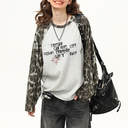 【leopard sleeve raglan long tee レオパードスリーブラグランロンティー J1263】