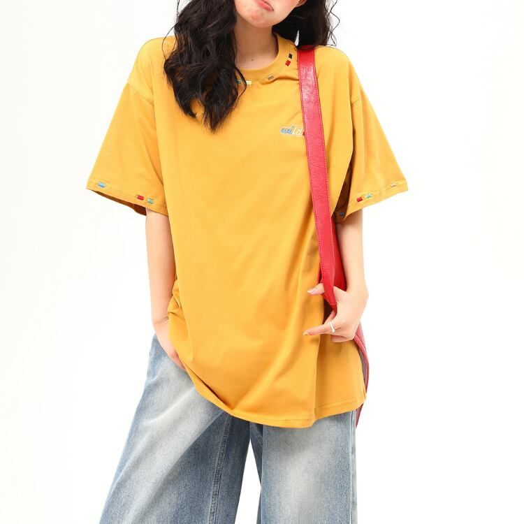カラフルな刺繍がアクセントになった半袖Tシャツ。 シンプルなデザインに個性をプラス。 【サイズ】 M 肩幅:56cm 胸囲:124cm 着丈:74cm 袖丈:20cm L 肩幅:58cm 胸囲:128cm 着丈:76cm 袖丈:21cm XL 肩幅:60cm 胸囲:132cm 着丈:78cm 袖丈:22cm ※採寸方法により1~3cmの誤差がある場合がございます ※モデル 身長163cm Mサイズ着用 【カラー】 ブラック イエロー 【素材】 綿/ポリエステル ✔ Shop top page https://shop.jemmener.com/ ✔ HOT ITEM https://shop.jemmener.com/categories/5960438 【お届けについて】 こちらの商品は海外店舗より直接発送となる為、 ご決済から発送まで1~3週間前後のお時間をいただいております。 (※商品の状況によっては、3週間以上かかる場合もございます。 その際は、メールにてご連絡させていただきます。) ◼️注意事項 ・タイミングによっては 商品在庫切れにより 注文キャンセルとさせていただく恐れもございますので、 予めご了承くださいませ。 ・こちらは輸入品となります。 日本製とは検品基準が異なる為、新品未使用品でも ごくわずかな汚れや傷がある場合もございます。 ・商品の色味は、お手持ちのデバイスの 環境設定により実物と若干異なる場合がございます。 ・イメージ違いやサイズ等、お客様都合による交換、 返品、キャンセルは対応出来かねます。 ———————————— ご購入前にこちらをお読みください →https://shop.jemmener.com/about ————————————