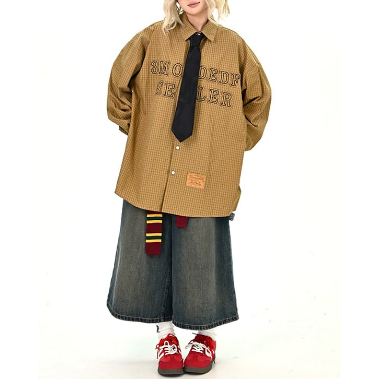【patchwork check pattern oversized shirt パッチワークチェック柄オーバーサイズシャツ J0688】 https://shop.jemmener.com/items/97804368