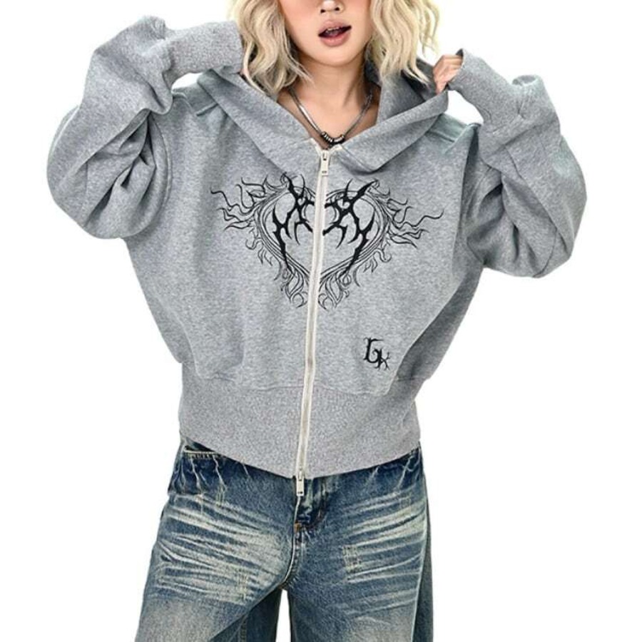 【dark heart cropped zip-up hoodie ダークハートクロップドジップアップフーディー J1365】 https://shop.jemmener.com/items/119577560