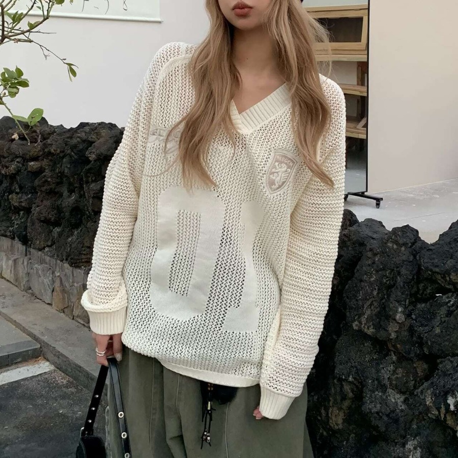 【mesh number logo knit メッシュナンバーロゴニット J0774】 https://shop.jemmener.com/items/99895879