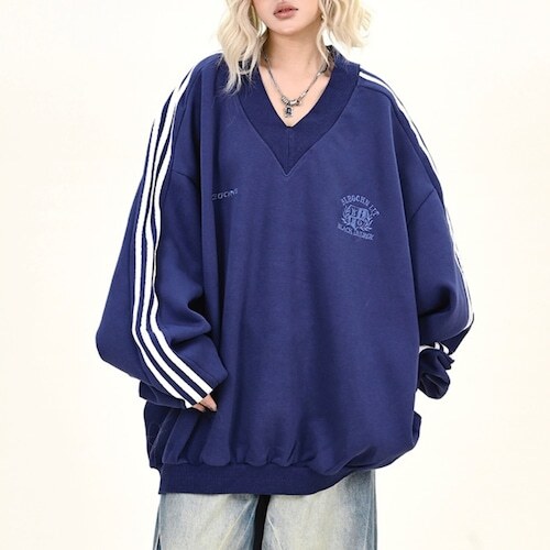 【V-neck line sleeve loose sweatshirt Vネックラインスリーブルーズスウェットシャツ J0824】