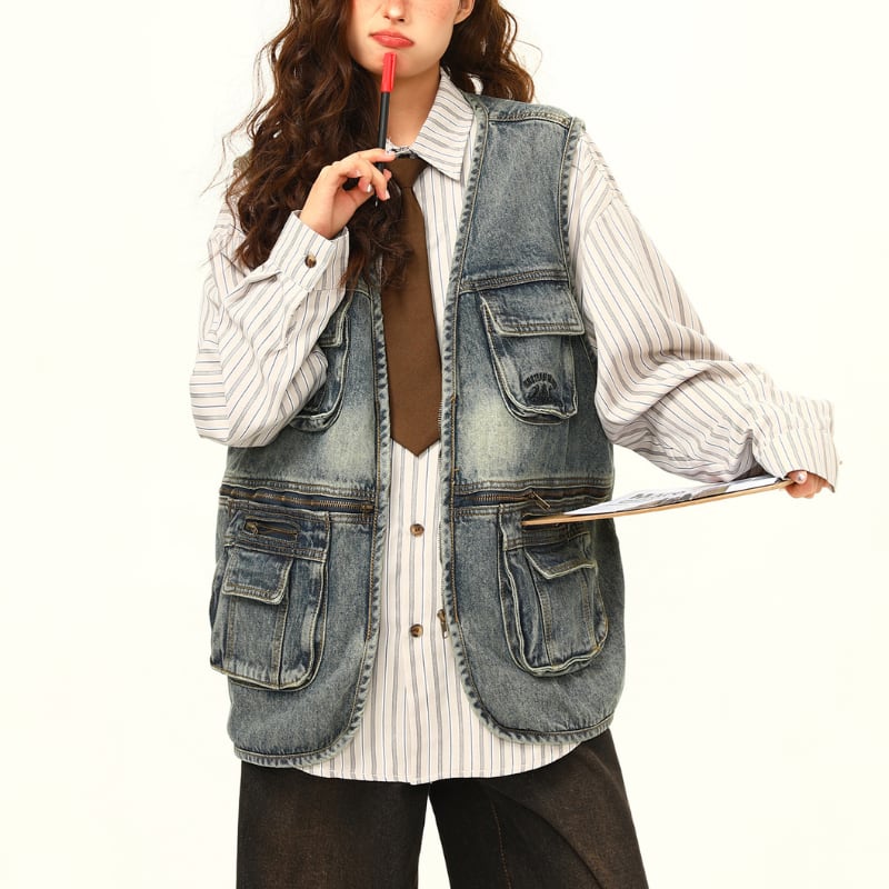 カジュアルな着こなしにアクセントを加えてくれるデニムベスト。 シャツやスウェットに羽織るだけで、普段のコーディネートをワンランクアップ。 【サイズ】 M 肩幅:43cm 胸囲:118cm 着丈:69cm L 肩幅:45cm 胸囲:122cm 着丈:70cm XL 肩幅:46cm 胸囲:126cm 着丈:71cm ※採寸方法により1~3cmの誤差がある場合がございます ※モデル 身長163cm Mサイズ着用 【カラー】 デニム 【素材】 綿/その他 ✔ Shop top page https://shop.jemmener.com/ ✔ HOT ITEM https://shop.jemmener.com/categories/5960438 【お届けについて】 こちらの商品は海外店舗より直接発送となる為、 ご決済から発送まで1~3週間前後のお時間をいただいております。 (※商品の状況によっては、3週間以上かかる場合もございます。 その際は、メールにてご連絡させていただきます。) ◼️注意事項 ・タイミングによっては 商品在庫切れにより 注文キャンセルとさせていただく恐れもございますので、 予めご了承くださいませ。 ・こちらは輸入品となります。 日本製とは検品基準が異なる為、新品未使用品でも ごくわずかな汚れや傷がある場合もございます。 ・商品の色味は、お手持ちのデバイスの 環境設定により実物と若干異なる場合がございます。 ・イメージ違いやサイズ等、お客様都合による交換、 返品、キャンセルは対応出来かねます。 ———————————— ご購入前にこちらをお読みください →https://shop.jemmener.com/about ————————————