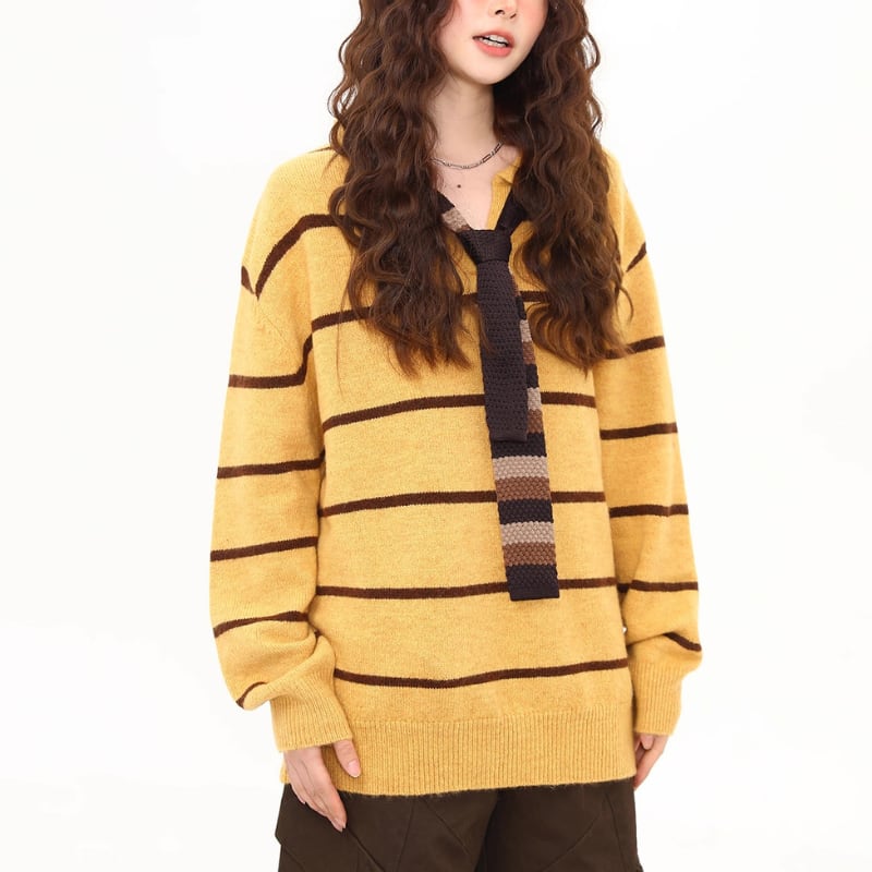 レトロ感漂うイエローカラーに、ポロ襟がアクセント。