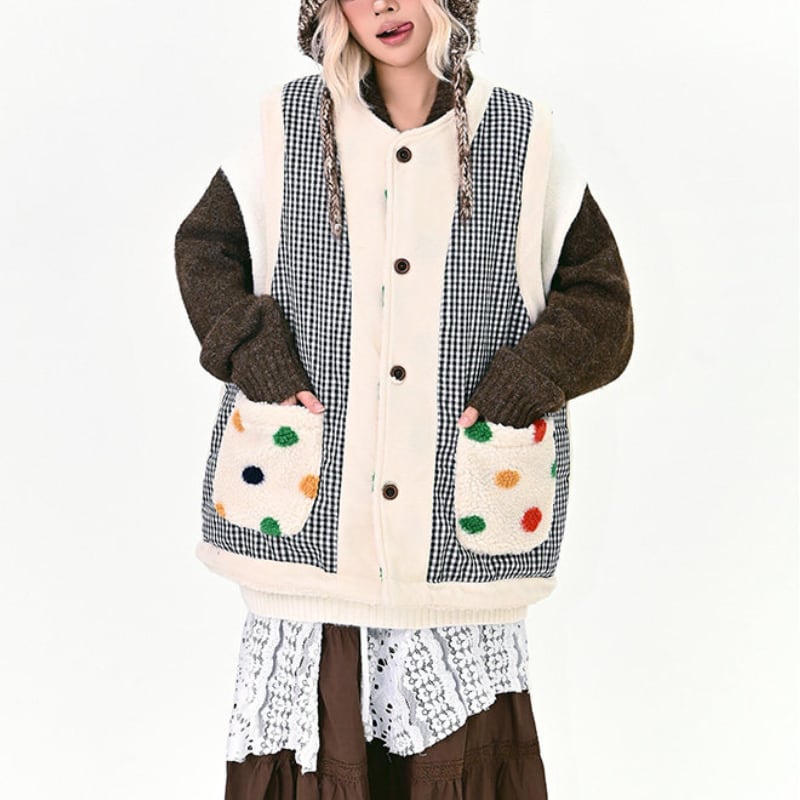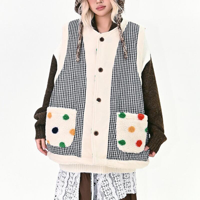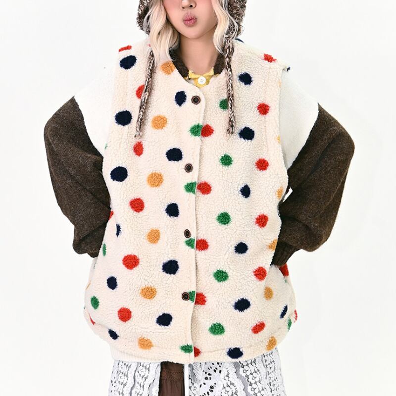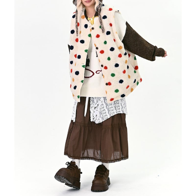 カラフルなドットとシックなチェック、気分で選べるリバーシブル仕様のベスト。 ふんわりとしたボアで、見た目にもあたたか。 レイヤードにもぴったりのアイテムです。 【サイズ】 M 肩幅:40cm 着丈:67cm L 肩幅:41cm 着丈:69cm XL 肩幅:42cm 着丈:71cm ※採寸方法により1~3cmの誤差がある場合がございます 【カラー】 ライトベージュ 【素材】 ポリエステル ✔ Shop top page https://shop.jemmener.com/ ✔ HOT ITEM https://shop.jemmener.com/categories/5960438 【お届けについて】 こちらの商品は海外店舗より直接発送となる為、 ご決済から発送まで1~3週間前後のお時間をいただいております。 (※商品の状況によっては、3週間以上かかる場合もございます。 その際は、メールにてご連絡させていただきます。) ◼️注意事項 ・タイミングによっては 商品在庫切れにより 注文キャンセルとさせていただく恐れもございますので、 予めご了承くださいませ。 ・こちらは輸入品となります。 日本製とは検品基準が異なる為、新品未使用品でも ごくわずかな汚れや傷がある場合もございます。 ・商品の色味は、お手持ちのデバイスの 環境設定により実物と若干異なる場合がございます。 ・イメージ違いやサイズ等、お客様都合による交換、 返品、キャンセルは対応出来かねます。 ———————————— ご購入前にこちらをお読みください →https://shop.jemmener.com/about ————————————