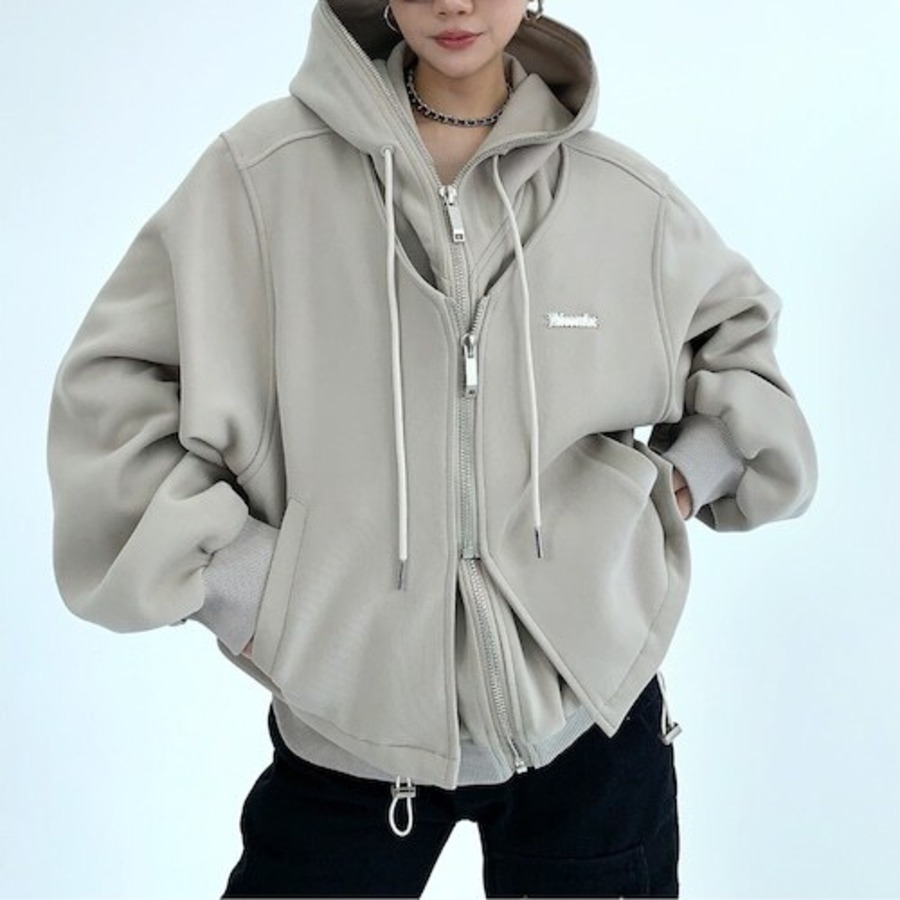 【fake two piece sweatshirt zipper フェイクツーピーススウェットジッパー J0550】 https://shop.jemmener.com/items/95576919