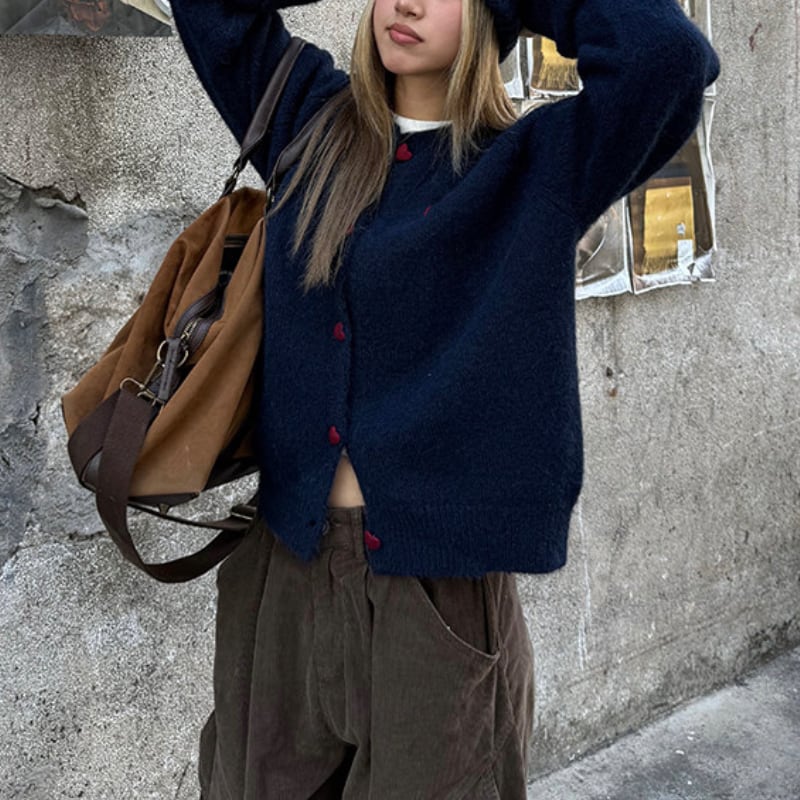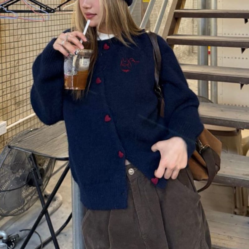 ハートボタンのアクセントが光るニットカーディガン。 ラフに羽織るだけで、抜け感あるこなれスタイルが完成します。 【サイズ】 M 胸囲:110cm 着丈:56cm 袖丈:66cm L 胸囲:114cm 着丈:58cm 袖丈:67cm XL 胸囲:116cm 着丈:60cm 袖丈:68cm 2XL 胸囲:120cm 着丈:62cm 袖丈:69cm ※採寸方法により1~3cmの誤差がある場合がございます ※モデル 身長160cm Mサイズ着用 【カラー】 ダークグレー ネイビー 【素材】 ポリエステル/ナイロン/アクリル/ウール/綿 ✔ Shop top page https://shop.jemmener.com/ ✔ HOT ITEM https://shop.jemmener.com/categories/5960438 【お届けについて】 こちらの商品は海外店舗より直接発送となる為、 ご決済から発送まで1~3週間前後のお時間をいただいております。 (※商品の状況によっては、3週間以上かかる場合もございます。 その際は、メールにてご連絡させていただきます。) ◼️注意事項 ・タイミングによっては 商品在庫切れにより 注文キャンセルとさせていただく恐れもございますので、 予めご了承くださいませ。 ・こちらは輸入品となります。 日本製とは検品基準が異なる為、新品未使用品でも ごくわずかな汚れや傷がある場合もございます。 ・商品の色味は、お手持ちのデバイスの 環境設定により実物と若干異なる場合がございます。 ・イメージ違いやサイズ等、お客様都合による交換、 返品、キャンセルは対応出来かねます。 ———————————— ご購入前にこちらをお読みください →https://shop.jemmener.com/about ————————————