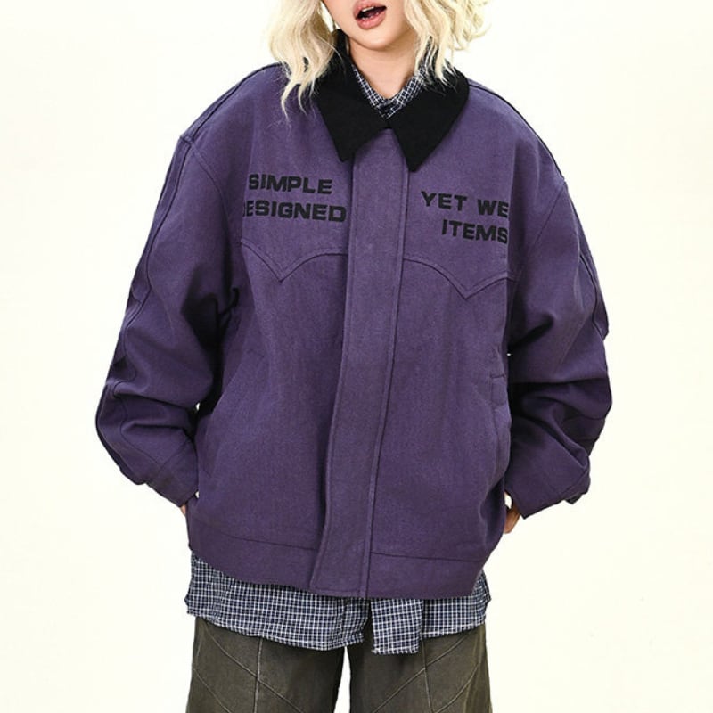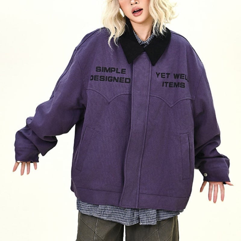 レタリングデザインが印象的なジャケット。 旬のカラートーンが魅力的で、どんなコーディネートにもマッチします! 【サイズ】 S 肩幅:56.6cm 胸囲:128cm 着丈:61.5cm 袖丈:58cm M 肩幅:57.8cm 胸囲:132cm 着丈:63.2cm 袖丈:59cm L 肩幅:59cm 胸囲:136cm 着丈:65.5cm 袖丈:60cm XL 肩幅:60.2cm 胸囲:140cm 着丈:67.5cm 袖丈:61cm ※採寸方法により1~3cmの誤差がある場合がございます 【カラー】 パープル ブラック 【素材】 ポリエステル/綿 ✔ Shop top page https://shop.jemmener.com/ ✔ HOT ITEM https://shop.jemmener.com/categories/5960438 【お届けについて】 こちらの商品は海外店舗より直接発送となる為、 ご決済から発送まで1~3週間前後のお時間をいただいております。 (※商品の状況によっては、3週間以上かかる場合もございます。 その際は、メールにてご連絡させていただきます。) ◼️注意事項 ・タイミングによっては 商品在庫切れにより 注文キャンセルとさせていただく恐れもございますので、 予めご了承くださいませ。 ・こちらは輸入品となります。 日本製とは検品基準が異なる為、新品未使用品でも ごくわずかな汚れや傷がある場合もございます。 ・商品の色味は、お手持ちのデバイスの 環境設定により実物と若干異なる場合がございます。 ・イメージ違いやサイズ等、お客様都合による交換、 返品、キャンセルは対応出来かねます。 ———————————— ご購入前にこちらをお読みください →https://shop.jemmener.com/about ————————————