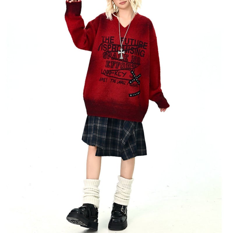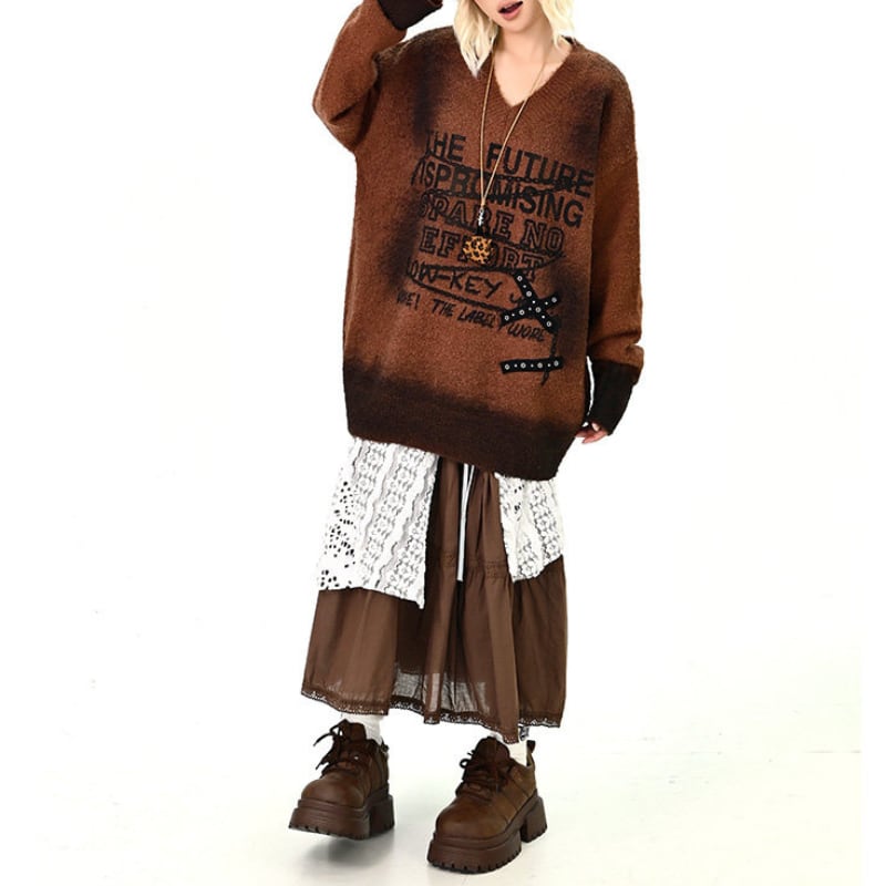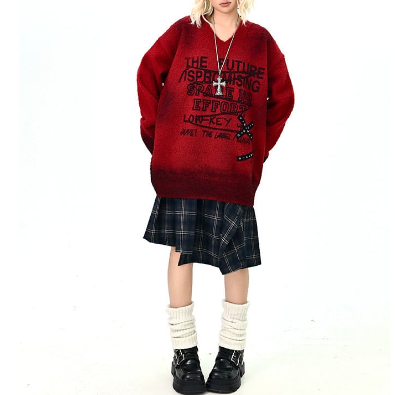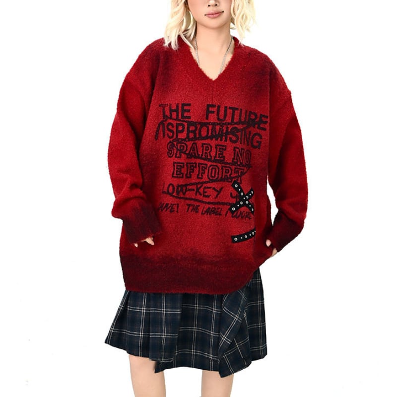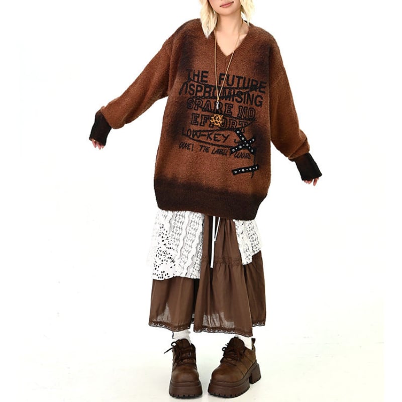 【wide sleeve v-neck knit ワイドスリーブVネックニット J1602】