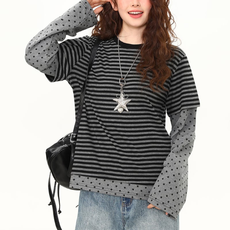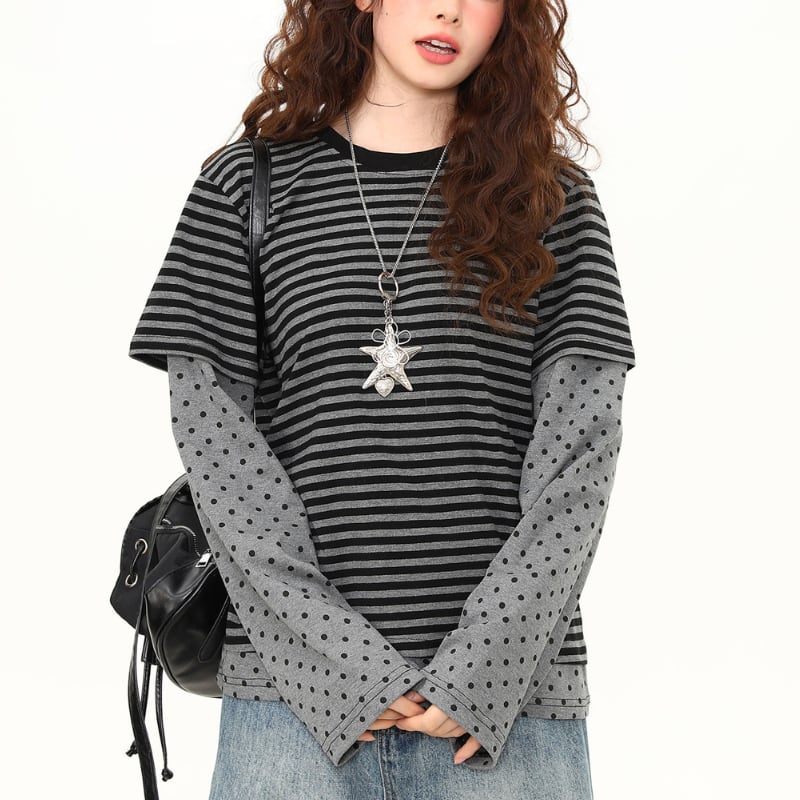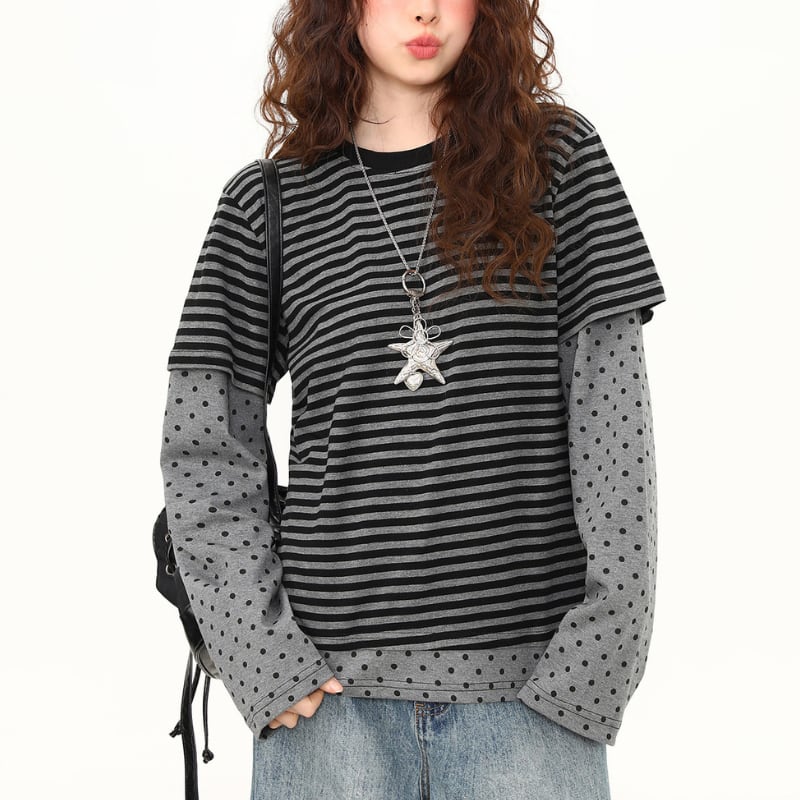 ドットとボーダーのMIXが新鮮! レイヤード風の袖デザインで、1枚でこなれ感アップ。 ゆるっと着られて楽ちんなのに、しっかりおしゃれ見えする主役トップス。 【サイズ】 S 肩幅:37cm 着丈:58cm 袖丈:60cm M 肩幅:38cm 着丈:60cm 袖丈:61cm L 肩幅:39cm 着丈:62cm 袖丈:62cm XL 肩幅:40cm 着丈:64cm 袖丈:63cm ※採寸方法により1~3cmの誤差がある場合がございます ※モデル 身長168cm Mサイズ着用 【カラー】 グレー ✔ Shop top page https://shop.jemmener.com/ ✔ HOT ITEM https://shop.jemmener.com/categories/5960438 【お届けについて】 こちらの商品は海外店舗より直接発送となる為、 ご決済から発送まで1~3週間前後のお時間をいただいております。 (※商品の状況によっては、3週間以上かかる場合もございます。 その際は、メールにてご連絡させていただきます。) ◼️注意事項 ・タイミングによっては 商品在庫切れにより 注文キャンセルとさせていただく恐れもございますので、 予めご了承くださいませ。 ・こちらは輸入品となります。 日本製とは検品基準が異なる為、新品未使用品でも ごくわずかな汚れや傷がある場合もございます。 ・商品の色味は、お手持ちのデバイスの 環境設定により実物と若干異なる場合がございます。 ・イメージ違いやサイズ等、お客様都合による交換、 返品、キャンセルは対応出来かねます。 ———————————— ご購入前にこちらをお読みください →https://shop.jemmener.com/about ————————————