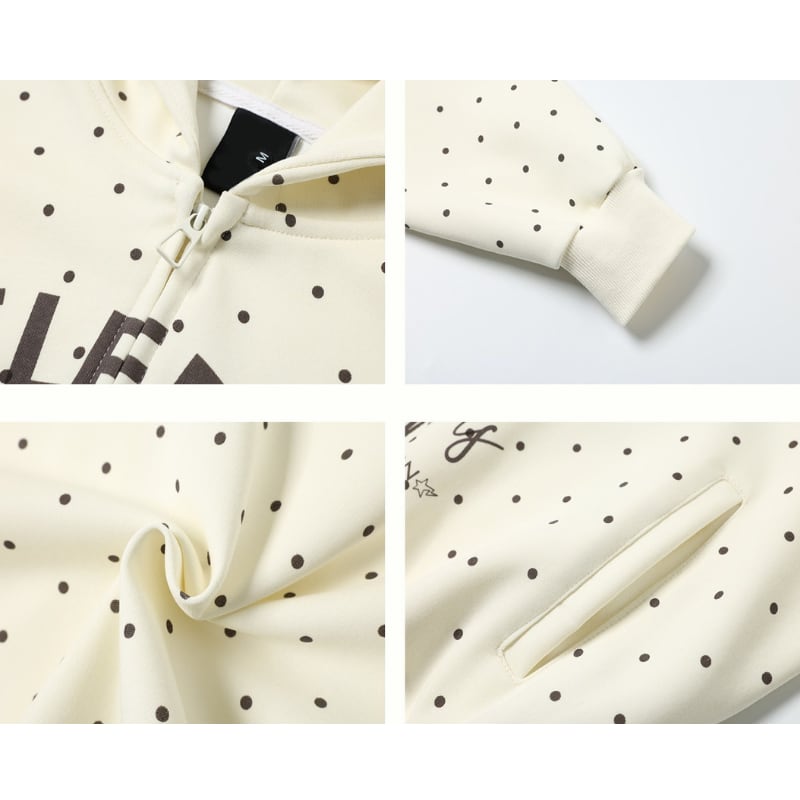 ドット柄×ロゴが印象的なジップパーカーで、ストリートムードをアップデート。 お気に入りのカラーを見つけて、自分らしく着こなして。 【サイズ】 S 肩幅:59cm 胸囲:126cm 着丈:65cm 袖丈:59cm M 肩幅:60cm 胸囲:130cm 着丈:67cm 袖丈:60cm L 肩幅:61cm 胸囲:134cm 着丈:69cm 袖丈:61cm ※採寸方法により1~3cmの誤差がある場合がございます ※モデル 身長162cm Mサイズ着用 【カラー】 オフホワイト ブラック グレー 【素材】 綿/ポリエステル ✔ Shop top page https://shop.jemmener.com/ ✔ HOT ITEM https://shop.jemmener.com/categories/5960438 【お届けについて】 こちらの商品は海外店舗より直接発送となる為、 ご決済から発送まで1~3週間前後のお時間をいただいております。 (※商品の状況によっては、3週間以上かかる場合もございます。 その際は、メールにてご連絡させていただきます。) ◼️注意事項 ・タイミングによっては 商品在庫切れにより 注文キャンセルとさせていただく恐れもございますので、 予めご了承くださいませ。 ・こちらは輸入品となります。 日本製とは検品基準が異なる為、新品未使用品でも ごくわずかな汚れや傷がある場合もございます。 ・商品の色味は、お手持ちのデバイスの 環境設定により実物と若干異なる場合がございます。 ・イメージ違いやサイズ等、お客様都合による交換、 返品、キャンセルは対応出来かねます。 ———————————— ご購入前にこちらをお読みください →https://shop.jemmener.com/about ————————————