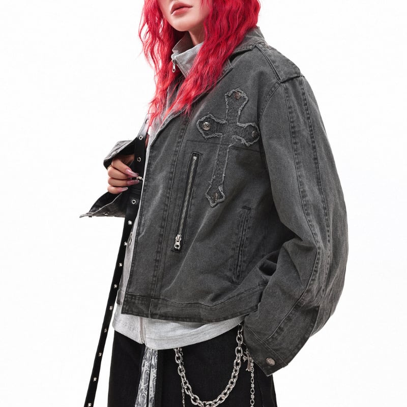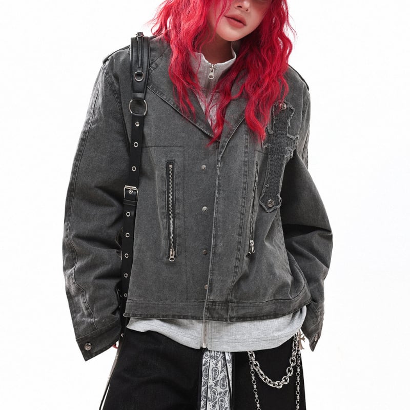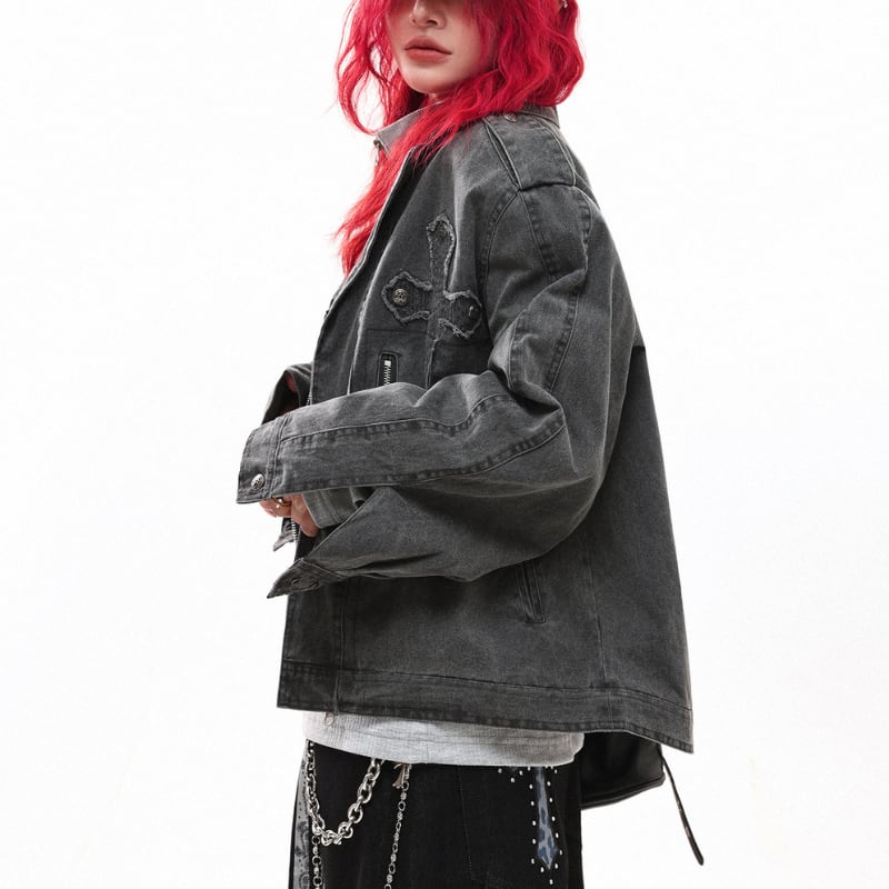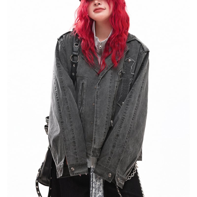 くたっとしたウォッシュ感、ほつれ感のあるクロスパッチ、 こなれ感もインパクトも、両方手に入るジャケット。 ストリートもロックもミックスして、自分らしく着こなして。 ユニセックスで楽しめる1着です。 【サイズ】 S 肩幅:49cm 胸囲:126cm 着丈:60cm 袖丈:59.5cm M 肩幅:50cm 胸囲:130cm 着丈:62cm 袖丈:61cm L 肩幅:51cm 胸囲:134cm 着丈:64cm 袖丈:62.5cm XL 肩幅:52cm 胸囲:138cm 着丈:66cm 袖丈:64cm ※採寸方法により1~3cmの誤差がある場合がございます ※モデル 身長162cm Mサイズ着用 【カラー】 ダークグレー 【素材】 綿 ✔ Shop top page https://shop.jemmener.com/ ✔ HOT ITEM https://shop.jemmener.com/categories/5960438 【お届けについて】 こちらの商品は海外店舗より直接発送となる為、 ご決済から発送まで1~3週間前後のお時間をいただいております。 (※商品の状況によっては、3週間以上かかる場合もございます。 その際は、メールにてご連絡させていただきます。) ◼️注意事項 ・タイミングによっては 商品在庫切れにより 注文キャンセルとさせていただく恐れもございますので、 予めご了承くださいませ。 ・こちらは輸入品となります。 日本製とは検品基準が異なる為、新品未使用品でも ごくわずかな汚れや傷がある場合もございます。 ・商品の色味は、お手持ちのデバイスの 環境設定により実物と若干異なる場合がございます。 ・イメージ違いやサイズ等、お客様都合による交換、 返品、キャンセルは対応出来かねます。 ———————————— ご購入前にこちらをお読みください →https://shop.jemmener.com/about ————————————