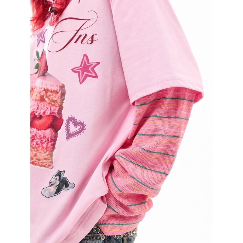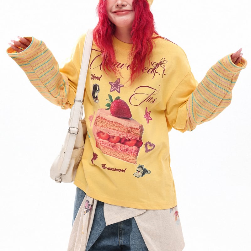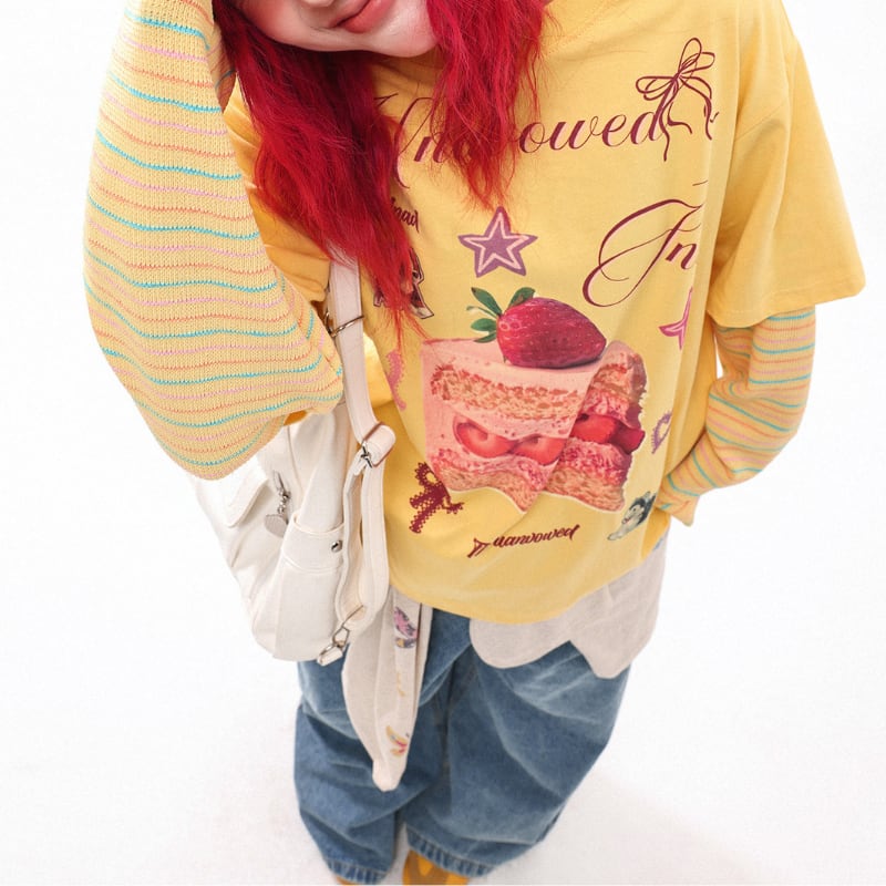ふんわり甘いケーキプリントに、ボーダー柄のニット袖が映えるフェイクレイヤードデザイン。 1枚でレイヤードスタイルが完成する、主役級ロングTシャツ。 甘さの中に遊び心をプラスした、着るだけで気分が上がる一枚です。 【サイズ】 S 胸囲:116cm 着丈:66cm 袖丈:56cm M 胸囲:120cm 着丈:68cm 袖丈:57cm L 胸囲:124cm 着丈:70cm 袖丈:58cm ※採寸方法により1~3cmの誤差がある場合がございます ※モデル 身長162cm Mサイズ着用 【カラー】 イエロー ピンク 【素材】 綿 ✔ Shop top page https://shop.jemmener.com/ ✔ HOT ITEM https://shop.jemmener.com/categories/5960438 【お届けについて】 こちらの商品は海外店舗より直接発送となる為、 ご決済から発送まで1~3週間前後のお時間をいただいております。 (※商品の状況によっては、3週間以上かかる場合もございます。 その際は、メールにてご連絡させていただきます。) ◼️注意事項 ・タイミングによっては 商品在庫切れにより 注文キャンセルとさせていただく恐れもございますので、 予めご了承くださいませ。 ・こちらは輸入品となります。 日本製とは検品基準が異なる為、新品未使用品でも ごくわずかな汚れや傷がある場合もございます。 ・商品の色味は、お手持ちのデバイスの 環境設定により実物と若干異なる場合がございます。 ・イメージ違いやサイズ等、お客様都合による交換、 返品、キャンセルは対応出来かねます。 ———————————— ご購入前にこちらをお読みください →https://shop.jemmener.com/about ————————————