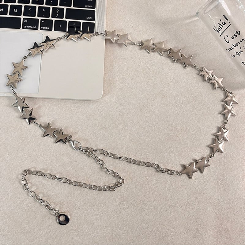 コーディネートのアクセントになるチェーンベルト。