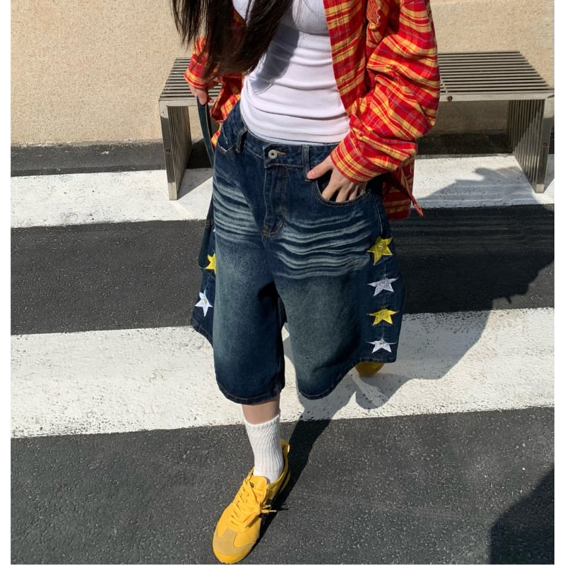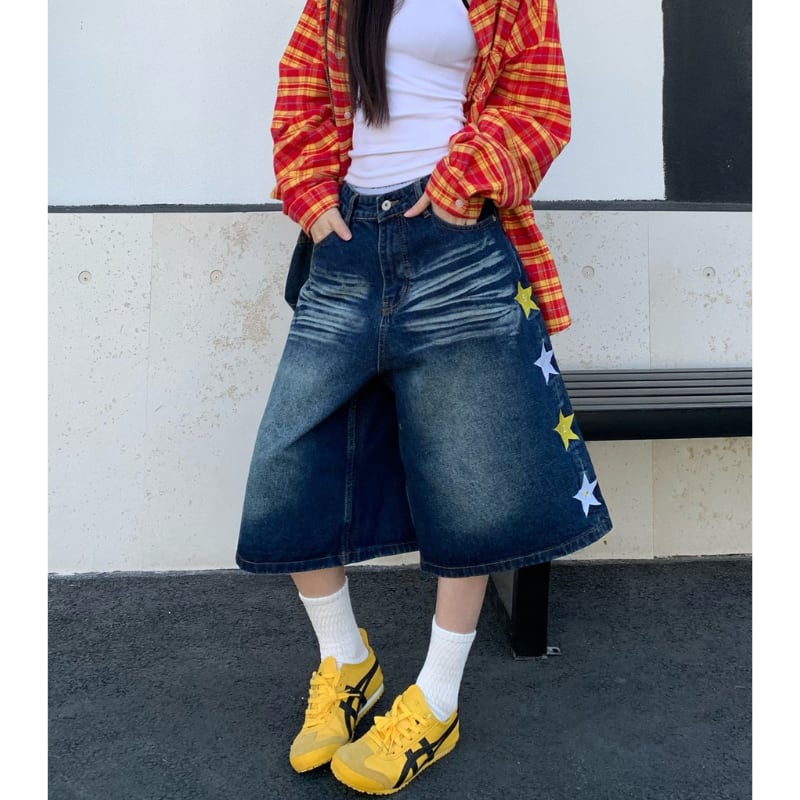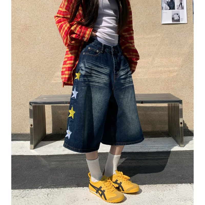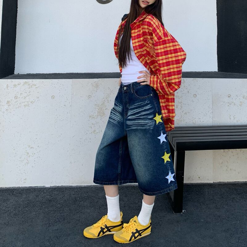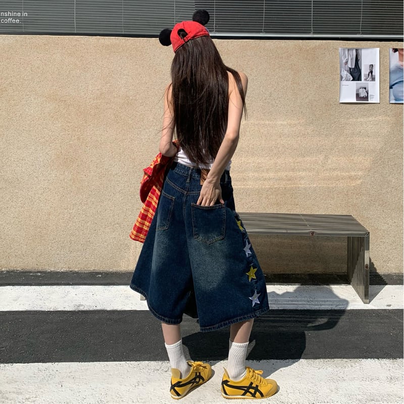 サイドに並ぶスターがポイント。 ウォッシュ感のあるデニムにワイドシルエットを合わせたストリート感たっぷりの一本。 クロップド丈でスニーカーとの相性も抜群。 【サイズ】 S ウエスト:70cm ヒップ:110cm 総丈:62cm 裾幅:36cm M ウエスト:74cm ヒップ:114cm 総丈:63cm 裾幅:37cm L ウエスト:78cm ヒップ:118cm 総丈:64cm 裾幅:38cm XL ウエスト:82cm ヒップ:122cm 総丈:65cm 裾幅:39cm ※採寸方法により1~3cmの誤差がある場合がございます ※モデル 身長163cm Mサイズ着用 【カラー】 デニム 【素材】 綿 ✔ Shop top page https://shop.jemmener.com/ ✔ HOT ITEM https://shop.jemmener.com/categories/5960438 【お届けについて】 こちらの商品は海外店舗より直接発送となる為、 ご決済から発送まで1~3週間前後のお時間をいただいております。 (※商品の状況によっては、3週間以上かかる場合もございます。 その際は、メールにてご連絡させていただきます。) ◼️注意事項 ・タイミングによっては 商品在庫切れにより 注文キャンセルとさせていただく恐れもございますので、 予めご了承くださいませ。 ・こちらは輸入品となります。 日本製とは検品基準が異なる為、新品未使用品でも ごくわずかな汚れや傷がある場合もございます。 ・商品の色味は、お手持ちのデバイスの 環境設定により実物と若干異なる場合がございます。 ・イメージ違いやサイズ等、お客様都合による交換、 返品、キャンセルは対応出来かねます。 ———————————— ご購入前にこちらをお読みください →https://shop.jemmener.com/about ————————————