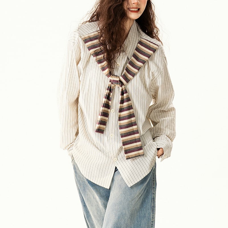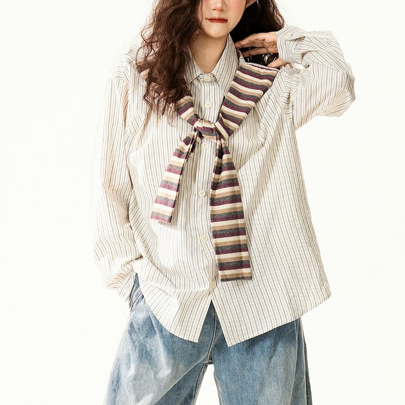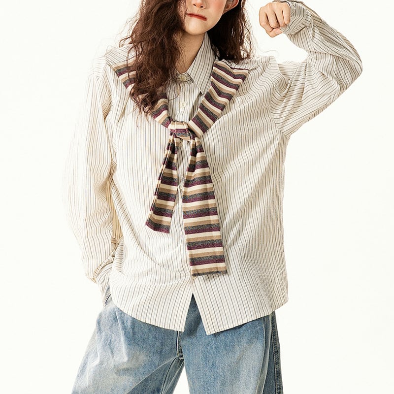シンプルじゃ物足りない日に。 ストライプ×ボーダーのミックスデザインで、さっと着るだけでこなれた印象に。 結び方次第で雰囲気が変わるタイディテールもポイント。 デニムと合わせて抜け感のあるスタイリングがおすすめ◎ 【サイズ】 M 肩幅:55cm 胸囲:124cm 着丈:71cm 袖丈:57cm L 肩幅:56.5cm 胸囲:128cm 着丈:73cm 袖丈:58cm XL 肩幅:58cm 胸囲:132cm 着丈:75cm 袖丈:59cm 2XL 肩幅:59.5cm 胸囲:136cm 着丈:77cm 袖丈:60cm ※採寸方法により1~3cmの誤差がある場合がございます ※モデル 身長162cm Mサイズ着用 【カラー】 ベージュ ブルー ✔ Shop top page https://shop.jemmener.com/ ✔ HOT ITEM https://shop.jemmener.com/categories/5960438 【お届けについて】 こちらの商品は海外店舗より直接発送となる為、 ご決済から発送まで1~3週間前後のお時間をいただいております。 (※商品の状況によっては、3週間以上かかる場合もございます。 その際は、メールにてご連絡させていただきます。) ◼️注意事項 ・タイミングによっては 商品在庫切れにより 注文キャンセルとさせていただく恐れもございますので、 予めご了承くださいませ。 ・こちらは輸入品となります。 日本製とは検品基準が異なる為、新品未使用品でも ごくわずかな汚れや傷がある場合もございます。 ・商品の色味は、お手持ちのデバイスの 環境設定により実物と若干異なる場合がございます。 ・イメージ違いやサイズ等、お客様都合による交換、 返品、キャンセルは対応出来かねます。 ———————————— ご購入前にこちらをお読みください →https://shop.jemmener.com/about ————————————