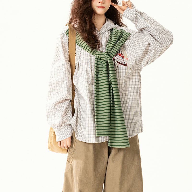 ラフだけど、ちゃんとおしゃれ。 チェック×フードに、グリーンのボーダータイが映える主役シャツ。 ゆるっと着るだけでこなれた雰囲気に仕上がる一枚。 いつものコーデにちょっとした遊び心をプラスして◎ 【サイズ】 M 肩幅:56cm 胸囲:124cm 着丈:71cm 袖丈:60cm L 肩幅:57cm 胸囲:128cm 着丈:73cm 袖丈:61cm XL 肩幅:58cm 胸囲:132cm 着丈:75cm 袖丈:62cm 2XL 肩幅:59cm 胸囲:136cm 着丈:77cm 袖丈:63cm ※採寸方法により1~3cmの誤差がある場合がございます ※モデル 身長162cm Mサイズ着用 【カラー】 グリーン ✔ Shop top page https://shop.jemmener.com/ ✔ HOT ITEM https://shop.jemmener.com/categories/5960438 【お届けについて】 こちらの商品は海外店舗より直接発送となる為、 ご決済から発送まで1~3週間前後のお時間をいただいております。 (※商品の状況によっては、3週間以上かかる場合もございます。 その際は、メールにてご連絡させていただきます。) ◼️注意事項 ・タイミングによっては 商品在庫切れにより 注文キャンセルとさせていただく恐れもございますので、 予めご了承くださいませ。 ・こちらは輸入品となります。 日本製とは検品基準が異なる為、新品未使用品でも ごくわずかな汚れや傷がある場合もございます。 ・商品の色味は、お手持ちのデバイスの 環境設定により実物と若干異なる場合がございます。 ・イメージ違いやサイズ等、お客様都合による交換、 返品、キャンセルは対応出来かねます。 ———————————— ご購入前にこちらをお読みください →https://shop.jemmener.com/about ————————————