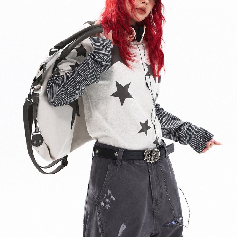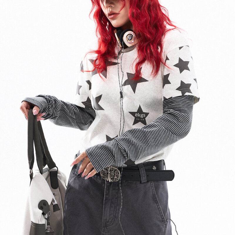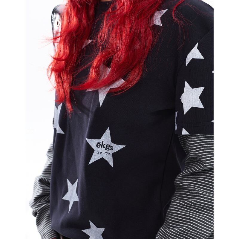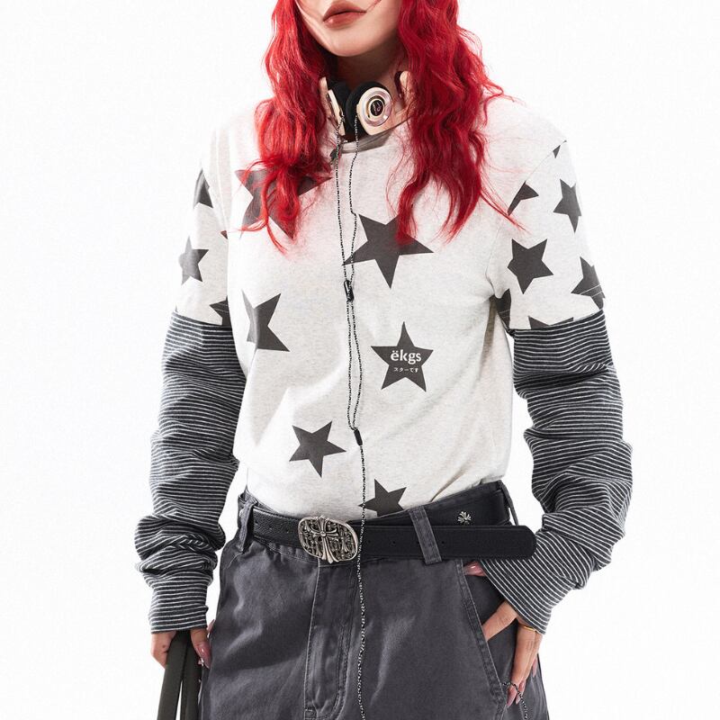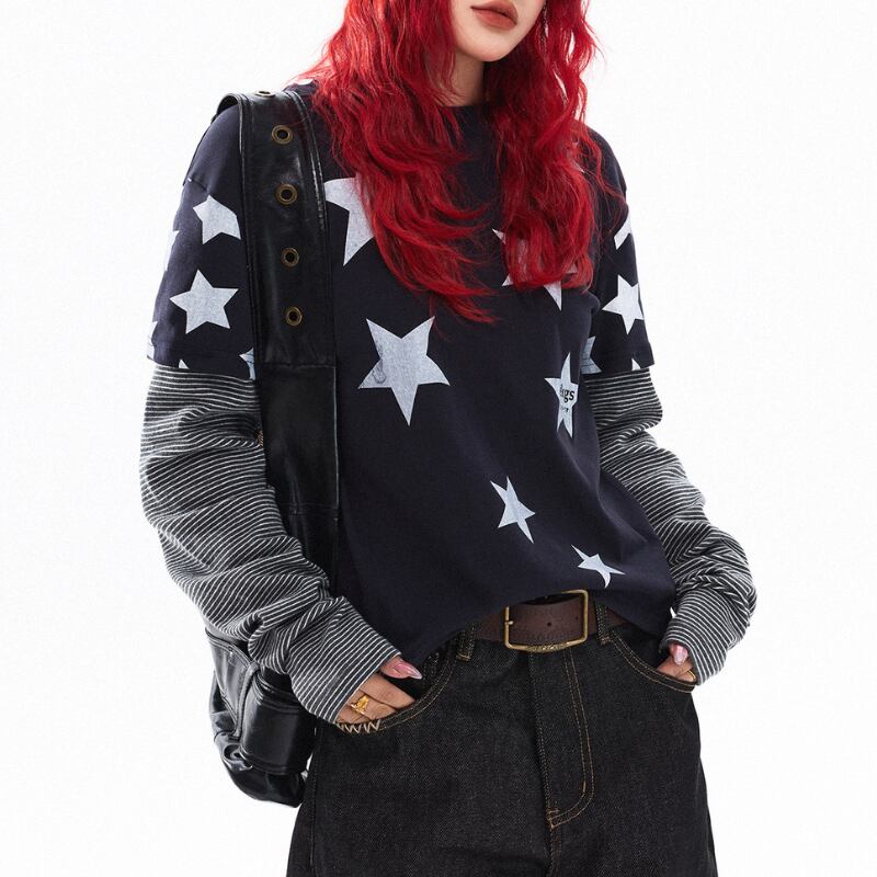 1枚でスタイリングが決まる、レイヤード風デザイン。 大胆なスターグラフィックとボーダースリーブが、ストリート感のある存在感を演出します。 【サイズ】 S 胸囲:94cm 着丈:58cm 袖丈:66cm M 胸囲:98cm 着丈:60cm 袖丈:67cm L 胸囲:102cm 着丈:62cm 袖丈:68cm ※採寸方法により1~3cmの誤差がある場合がございます ※モデル 身長162cm Mサイズ着用 【カラー】 ライトグレー ネイビー ✔ Shop top page https://shop.jemmener.com/ ✔ HOT ITEM https://shop.jemmener.com/categories/5960438 【お届けについて】 こちらの商品は海外店舗より直接発送となる為、 ご決済から発送まで1~3週間前後のお時間をいただいております。 (※商品の状況によっては、3週間以上かかる場合もございます。 その際は、メールにてご連絡させていただきます。) ◼️注意事項 ・タイミングによっては 商品在庫切れにより 注文キャンセルとさせていただく恐れもございますので、 予めご了承くださいませ。 ・こちらは輸入品となります。 日本製とは検品基準が異なる為、新品未使用品でも ごくわずかな汚れや傷がある場合もございます。 ・商品の色味は、お手持ちのデバイスの 環境設定により実物と若干異なる場合がございます。 ・イメージ違いやサイズ等、お客様都合による交換、 返品、キャンセルは対応出来かねます。 ———————————— ご購入前にこちらをお読みください →https://shop.jemmener.com/about ————————————