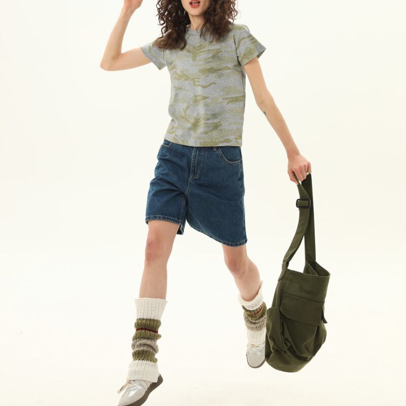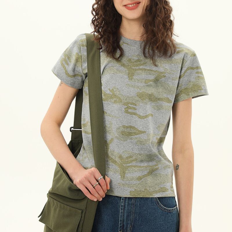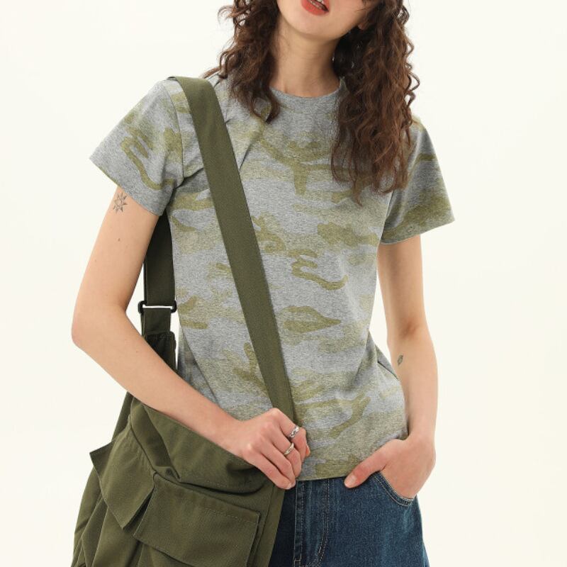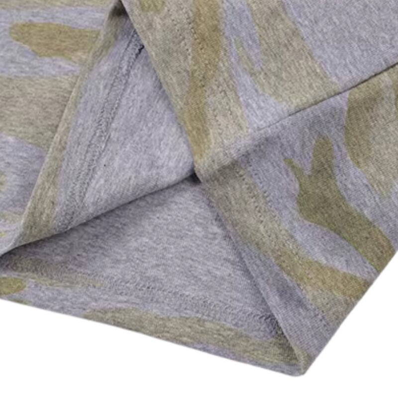 カーキ×グレーのニュアンス柄で、カジュアルにひとクセプラス。