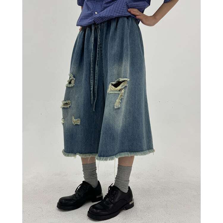 【distressed wide cropped denim ダメージワイドクロップドデニム J1081】