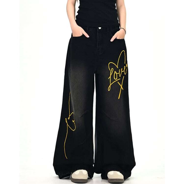 【yellow heart lettering denim イエローハートレタリングデニム J1380】 https://shop.jemmener.com/items/119761878