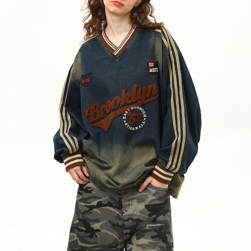 【V-neck logo denim sweatshirt Vネックロゴデニムスウェットシャツ J1261】