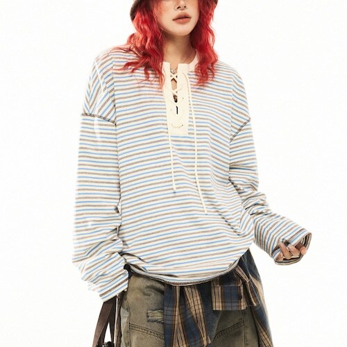 【lace-up striped long tee レースアップボーダーロングティー J1739】 https://shop.jemmener.com/items/135949520