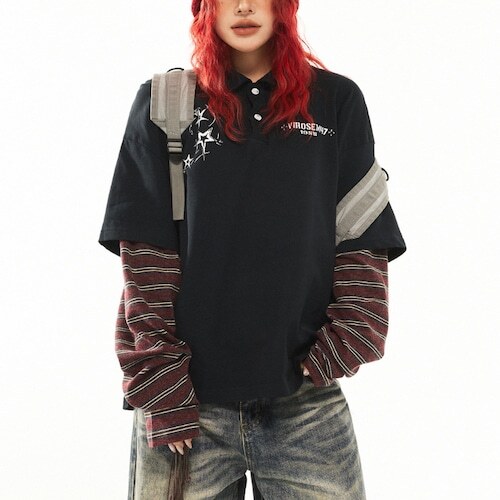 【fake two-piece polo long tee フェイクツーピースポロロングティー J1745】 https://shop.jemmener.com/items/135952306