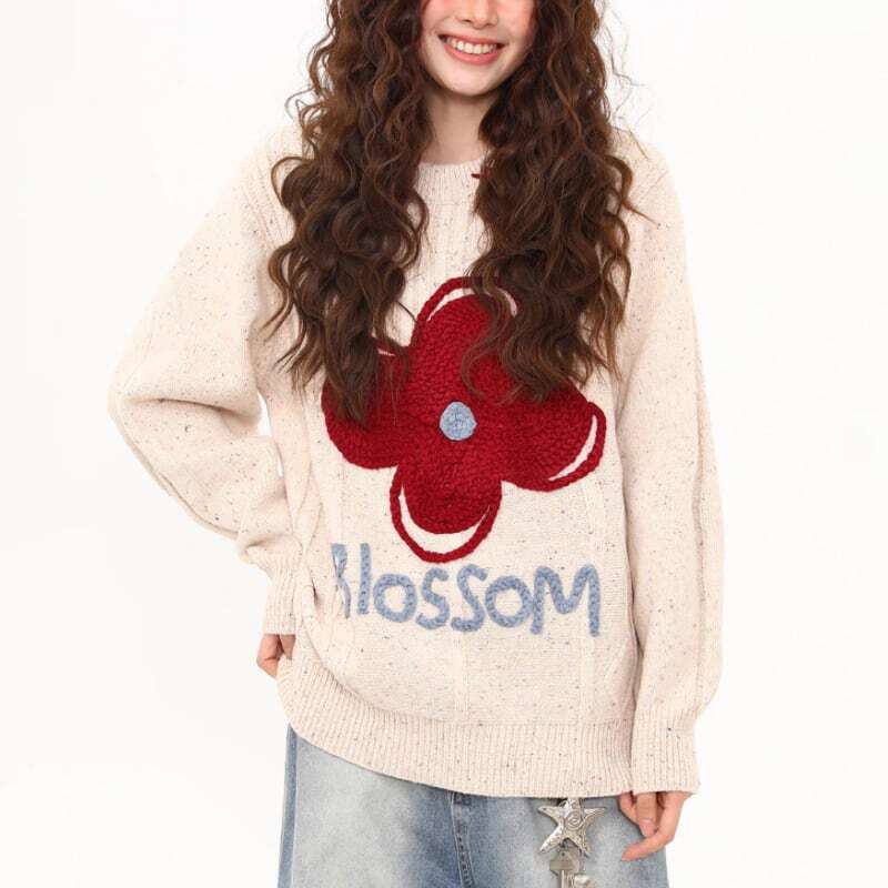 【big flower embroidered knit ビッグフラワー刺繍ニット J1592】 https://shop.jemmener.com/items/127899980