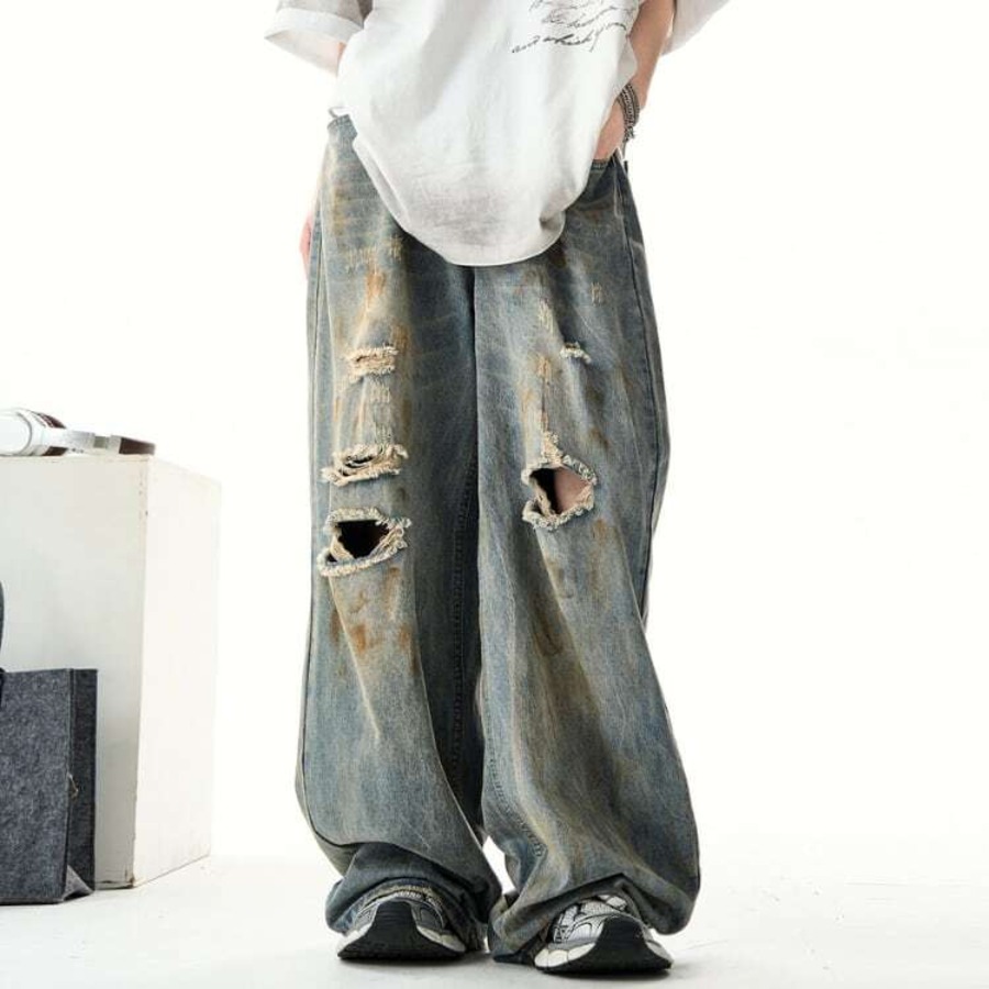 【distressed wide straight denim ダメージワイドストレートデニム J1154】