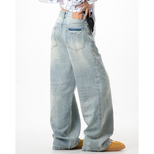【pocket distressed wide leg denim ポケットダメージワイドレッグデニム J0496】