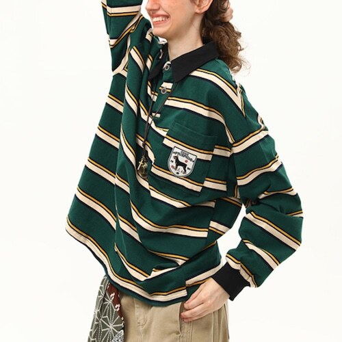 【dog patch border polo long tee ドッグワッペンボーダーポロロングティー J1504】