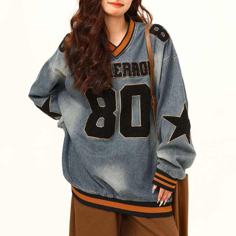 【v-neck number denim sweatshirt Vネックナンバーデニムスウェットシャツ J1497】 https://shop.jemmener.com/items/124555997