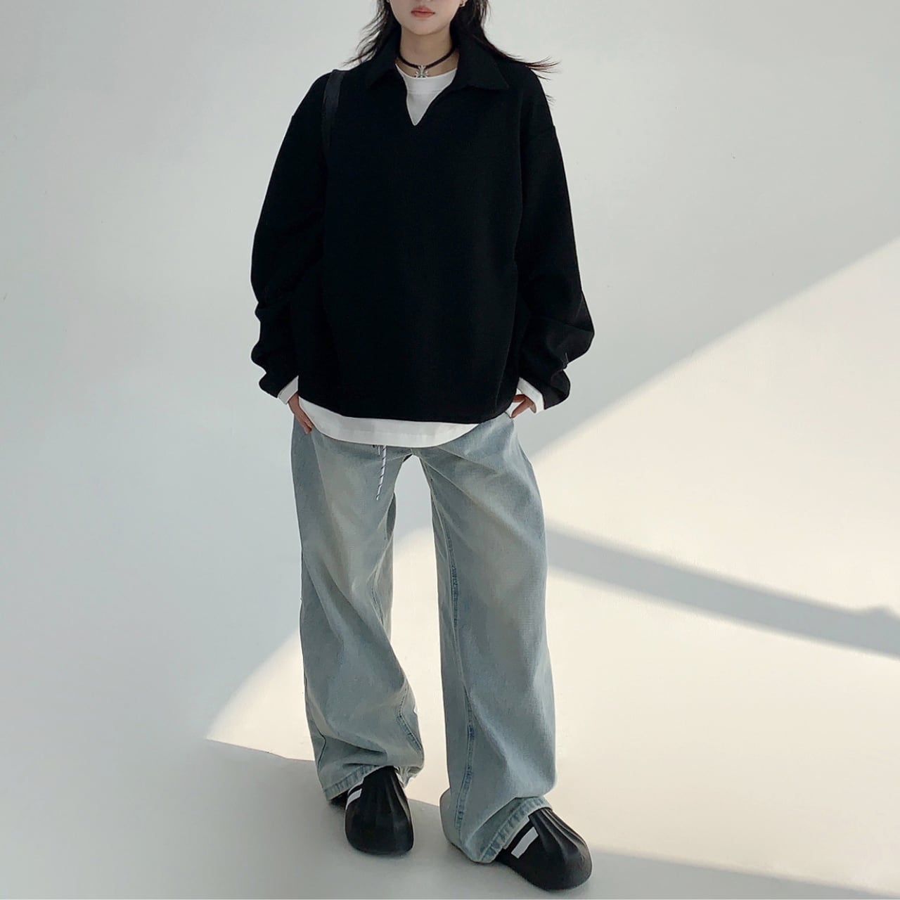 【V-neck line sleeve loose sweatshirt Vネックラインスリーブルーズスウェットシャツ J0824】