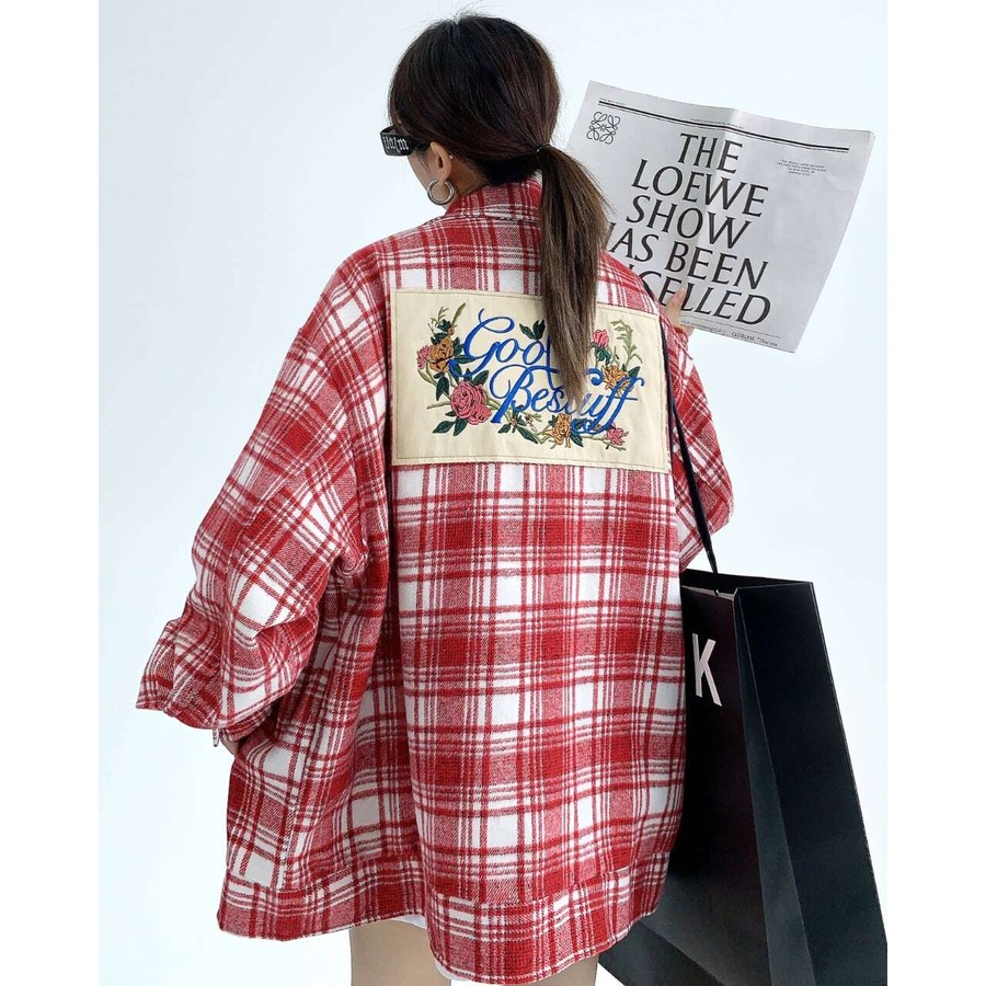 【red check pattern embroidered back patch jacket レッドチェック柄刺繍バックパッチジャケット J0723】 https://shop.jemmener.com/items/98322798